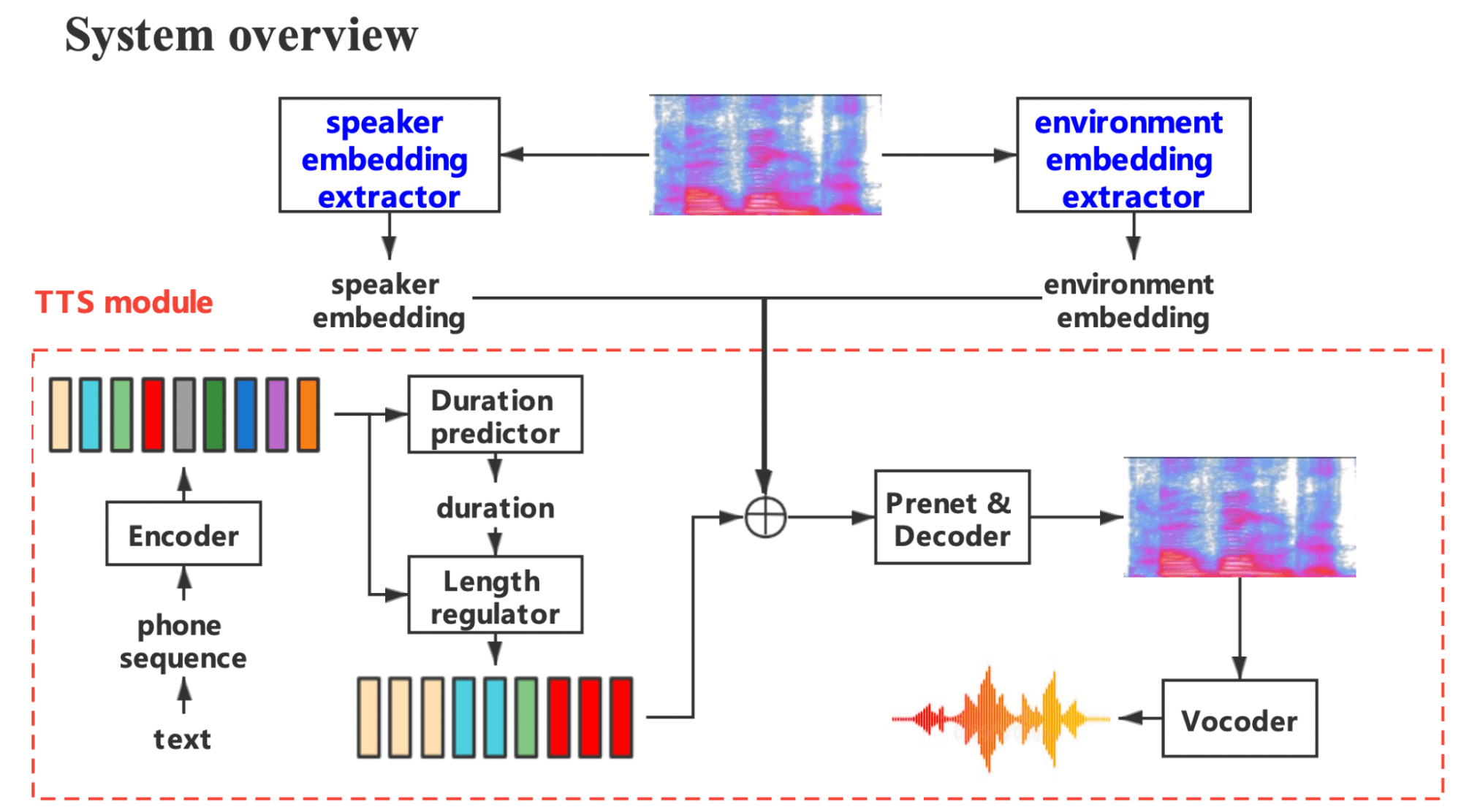To create an environment-aware TTS model that could captured the “sound” of a room, Chinese University of Hong Kong researchers Tan et al. created an architecture with the following three main components: